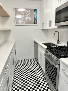 Live Comfortably in this Sun-Flooded Spacious Home. Capture the Garden and Unobstructed City Views from Floor-To-Ceiling Windows. Newly renovated Kitchen features Shaker White Cabinets, Quartz Countertops, Under Mount Sink and Stainless Steel Appliances. The Black and White tiled floor completes the Stylish Modern look. The Bathroom is outfitted with a new Pedestal Sink, Large Medicine Cabinet and Toilet. Many Closets. Parquet Floors. All New Electric.