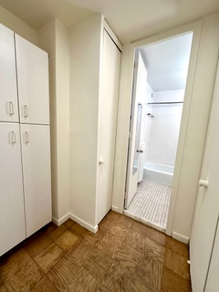 Spacious studio apartment in mint condition, flooded with natural light from floor-toceiling w indows. Features are rich wood cabinetry, granite countertops, an undermount stainless steel sink, and a ceramic tile backsplash - perfect for both cooking and entertaining. The updated bathroom includes a modern vanity and a large mirrored medicine cabinet. The layout offers a dedicated alcove/work area, a separate dressing area and impressive large closets plus built-in for exceptional storage. Additional highlights include parquet floors throughout and all new electrical. A bright, welldesigned studio that lives larger than expected.